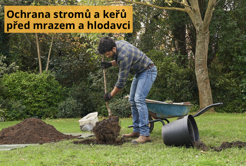Mladé stromy a keře je dobré chránit před mrazem i hlodavci. Kolem kmenů můžete umístit ochrannou síť nebo zábal, který zabrání hlodavcům v okusu kůry. Mulčovací kůra kolem kořenů stromů také pomůže zabránit poškození mrazem.