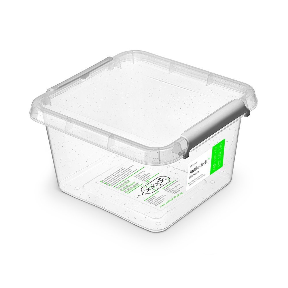 Antibakteriální boxy jsou vyrobeny z plastu s mikročásticemi stříbra, které ničí bakterie a plísně. Jsou pro lidi bezpečné. Materiál: transp. plast. Rozměry: v. 12cm x d. 20cm x š. 20cm x obj. 3l.