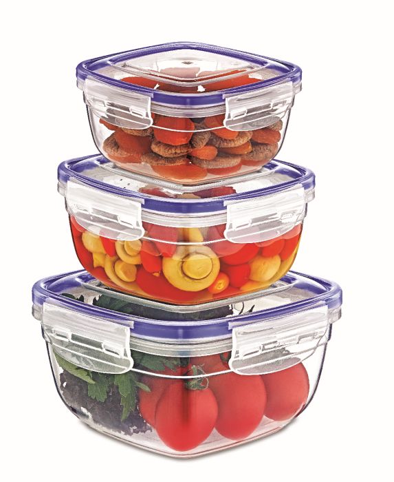 Box-sada 3ks, čtverc.klick 1,5-0,9-0,5l netekoucí, plast