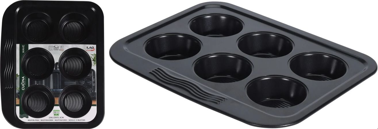 Forma MUFFINY 6ks, 29x23x3,3cm, nepřilnavý povrch• Skladem centrální sklad | odešleme do 2-3 prac. dnů175 Kč/ ks145 Kč bez DPH