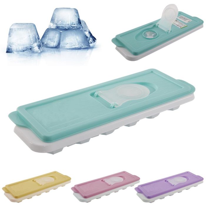 Forma na led vytvoří kostky ledu. Díky víčku je vkládání do mrazničky bezpečné a pohodlné. Materiál: plast.