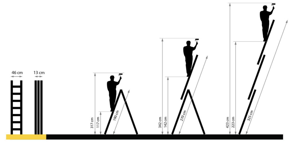 Profesionální víceúčelový žebřík🪜se stabilizátorem, vhodný pro domácí i profesionální použití. Žebř má maximální pracovní výšku 4,23 m a nosnost 150 kg. Konstrukce je pevná a lehká, zajišťuje stabilitu a bezpečnost při práci ve výškách. Certifikace TÜV Rheinland a EN 131 potvrzuje jeho kvalitu pro profesionální nasazení.