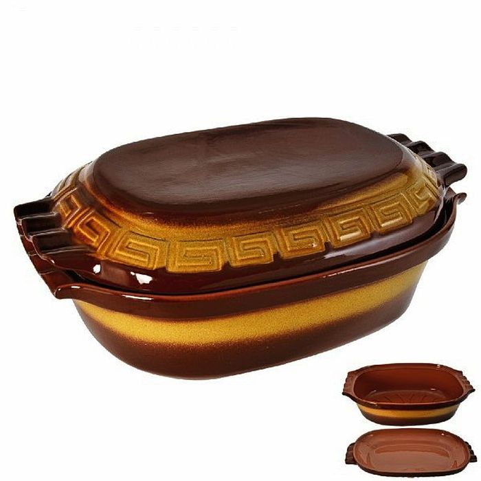 Připravte si v troubě jídlo, které bude výborné a hlavně šťavnaté díky tomuto keramickému glazovanému pekáči. Pekáč je vyroben z vysoce kvalitního přírodního materiálu. Keramika výborně vede teplo a proto se stává vaření, pečení či zapékání ekonomickým. Trouba se vypíná v předstihu a jídlo díky keramice dojde. Pekáč keramický s víkem glazovaný 41x27 cm má dlouhou životnost v případě správného zacházení a dodržování základních pravidel. Pekáč nesnese tepelný šok, vždy je nutné dodržovat zásadu postupného zahřívání a ochlazování. Mezi pekáčem a dnem trouby musí být vždy mezera, pekáč je tedy nutné umístit na mřížku. Vždy je nutné dát studený pekáč do studené trouby a pak ji až zapnout, připravovaný pokrm podlévejte vždy teplou vodou nebo vývarem, nikdy nenalévejte do rozehřátého pekáče studenou vodu, mohlo by dojít k prasknutí. Po vyjmutí z trouby pekáč pokládejte na dřevěnou podložku, nikdy ne na dlaždice, kov či kámen.