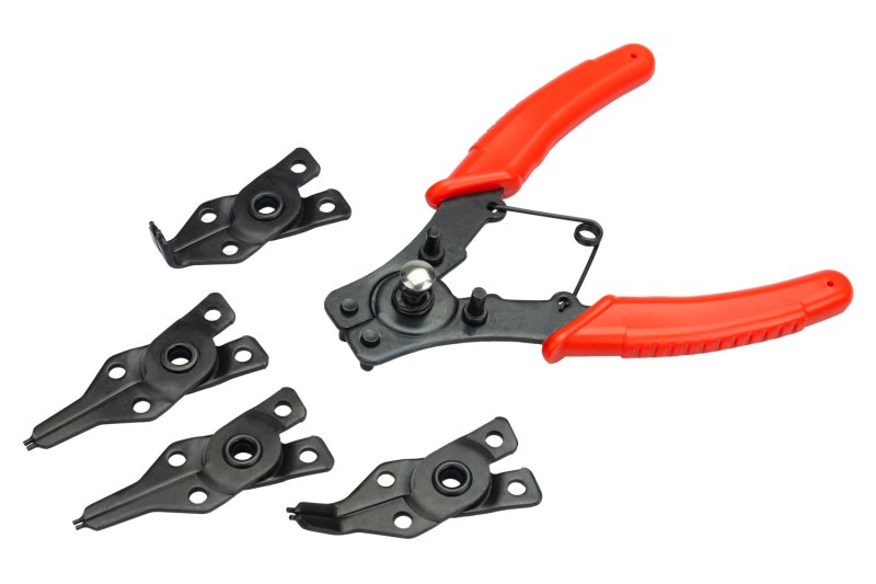 Kleště na pojistné (segrovy) kroužky - SADA, snadno výměnitelné čelisti pro vnitřní nebo vnější segrovy kroužky, ergonomické rukojeti, blistr.