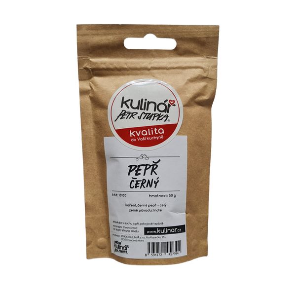 Koření-"K"-PEPŘ ČERNÝ celý, sáček-50g QQ• Skladem centrální sklad | odešleme do 2-3 prac. dnů64 Kč/ ks57 Kč bez DPH