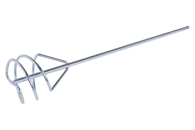 Míchadlo spirála - drát ( metla ), pozinkované, 100 x 500 mm - SDS +, použití : pro důkladné rozmíchání lepidel na obklady, spárovaných hmot, lepících malt, hotových omítek, mazaniny, stěrkovacích hmot, vyrovnávacích hmot.
