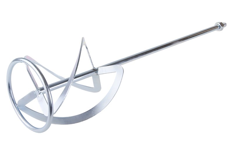 Míchadlo - levotočivé (míchací účinek shora tlačí směs dolů) - metla, pozinkované, rozměr : 140 x 600 mm - M14, použití : pro těžké materiály s vysokou viskozitou. Malty, betony, cementové a vápenné omítky, spojovací hmoty, mazaniny, epoxidové pryskyřice, živičné vrstvy.
