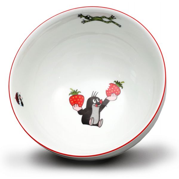 Dětská porcelánová miska s obrázkovými motivy krtečka z populárního večerníčku. Tradiční kvalita českého porcelánu. Každý produkt je zdravotně nezávadný a certifikovaný. Lze mýt v myčce. Objem misky 300ml, výška 7,8cm.