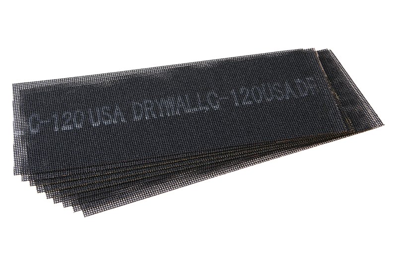Brusná mřížka 115 x 290 mm, zrn.120, 10ks/sada. Brousicí mřížka je konstruována tak, že na nosnou tkaninu ze skelných vláken jsou pryskyřicí přilepena brousicí zrna karbidu křemíku. Výhoda mřížkové struktury proti běžným brousicím papírům spočívá v tom, že se nezanáší odbroušeným materiálem.