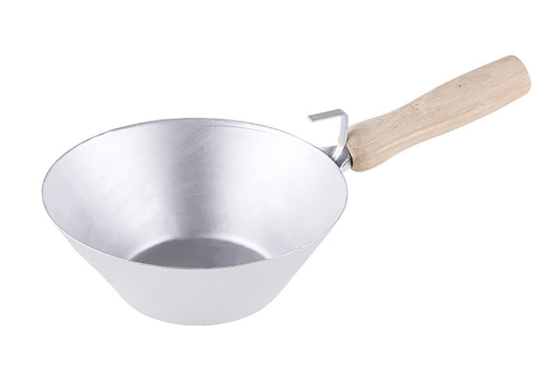 Zednická naběračka 180 mm s dřevěnou ručkou a s háčkem na pověšení. Je zednické nářadí používané pro přemisťování stavebních hmot: malta, beton atd.