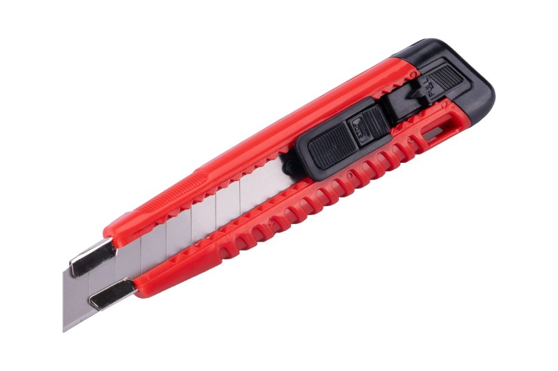 Odlamovací nůž FESTA 18mm, kvalitní materiály, kovová lišta, automatická aretace s pojistkou, do nože lze umístit až 3 náhradní břity, blistr.
