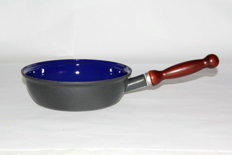 Pánev od české firmy Belis je vyrobená ze silného ocelového plechu. Je vhodná na všechny typy sporáků včetně indukce. Dřevěná rukojeť je odnímatelná a pánev tak využijete i pro zapékání v troubě. Není vhodná do myčky. Nejedná se o pravou litinu, ale silný plech má velmi podobné vlastnosti. Historicky se tomuto nádobí s typickým modrým smaltem přezdívá "česká litina".