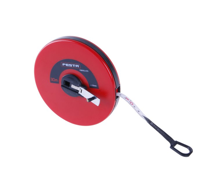 Kvalitní a přesné sklolaminátové pásmo, páska zakončená očkem s gumovou ochranou proti vytrhnutí, CE certifikát - vhodné ke kalibraci, sklopná navíjecí ručka, poutko.