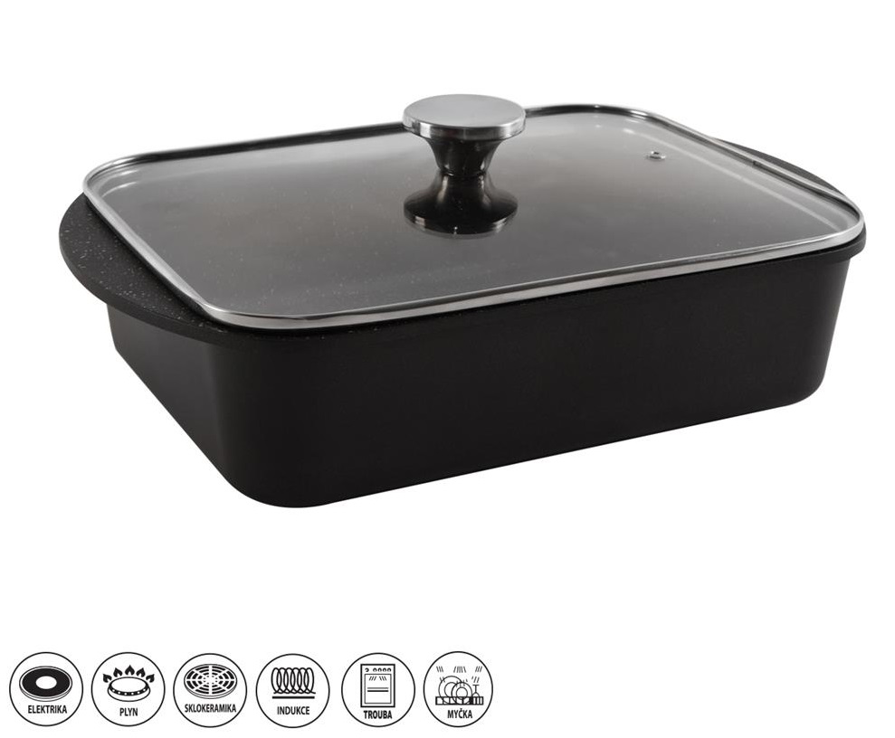 - Pekáč 35x22,5x12cm GRANDE+víko sklo, indukce, nepřilnavý povrch