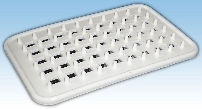 Plastová podložka pod mýdlo - JEŽEK. Rozměry: 103mm x 70mm × 25mm.