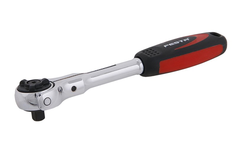 Kvalitní ráčna FESTA s tělem, kovaným z chrom - vanadiové oceli, a otočným kloubem pro práci pod úhlem, 1/4 - 72 zubů s ovládací páčkou a ergonomickou gumovou oválnou rukojetí. Rohatku momentového klíče tvoří 72 kalených zubů, které umožňují krok záběru již po 5-ti obloukových stupních.