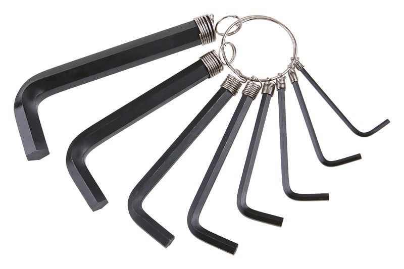 - sada nejpoužívanějších rozměrů L šestihranných klíčů (inbusů)