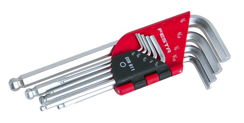 - Sada L klíčů inbus FESTA CrV s kuličkou inch 9ks