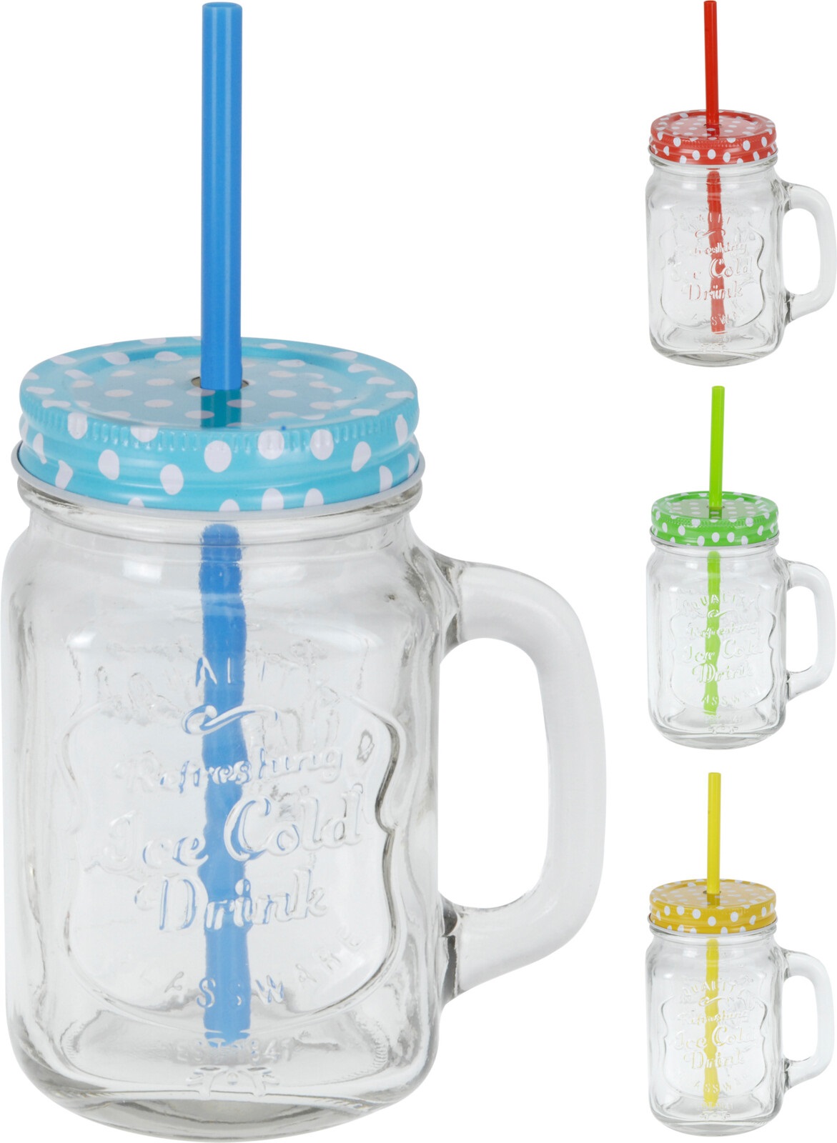 Sklenice s víčkem a brčkem. Ať už na alkoholické nápoje nebo bez alkoholu.
