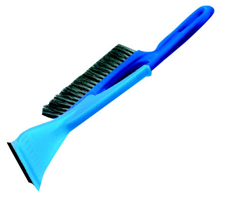 Škrabka na led se smetáčkem nejen do auta slouží na očištění skla před jízdou, na boční straně je opatřena smetáčkem k následnému očištění.