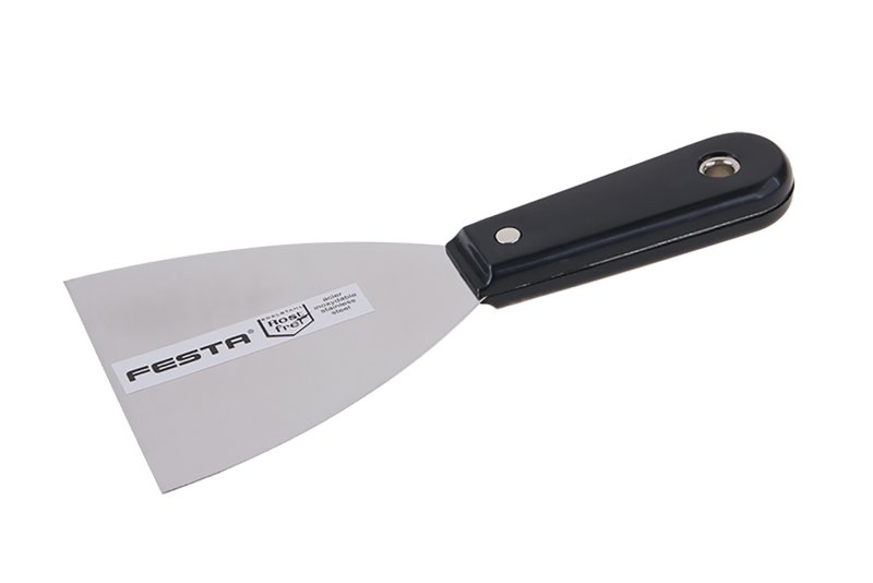 Špachtle nerezová FESTA 100 mm s plastovou ručkou. Je užíván ve štukatérství, malířství, natěračství, opravách karosérií nebo při umělecké tvorbě apod. Je vhodná pro roztírání sádry nebo jiných tmelících hmot či k odstraňování staré malby a nátěrů.