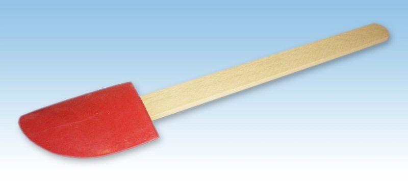 Gumová kuchyňská stěrka s dřevěným držadlem najde využití hlavně v kuchyních. Je vhodná při přípravě těst, polev, ale i nejrůznějších slaných a sladkých pokrmů. Je ohebná, dokáže tak skvěle kopírovat tvar mísy.