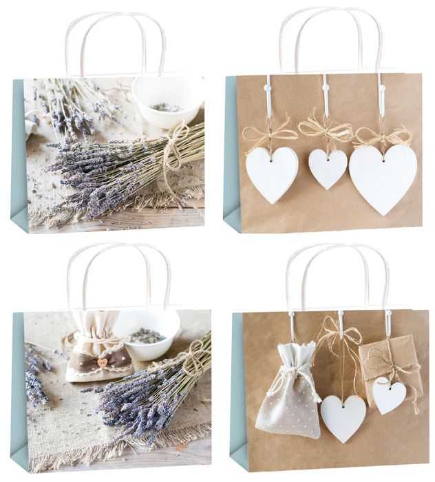 - Taška dárk. L, LEVANDULE/SRDCE, 32x26x12,7cm, papír