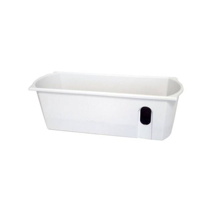 Plastový bílý matný samozavlažovací truhlík s roštem a s provlečeným knotem. Truhlík má tvar obdélníku, kdy jsou boční strany půlkruhově zahnuté. Celkový tvar kopíruje horní lem. V pravém dolním rohu se nachází otvor pro odtok přebytečné vody. Truhlík se hodí zejména pro výsadbu balkonových rostlin a k umístění na terasy, balkóny, lodžie, k zavěšení na zábradlí a pod. Rozměry: d. 50cm x š. 20cm x v. 16cm.