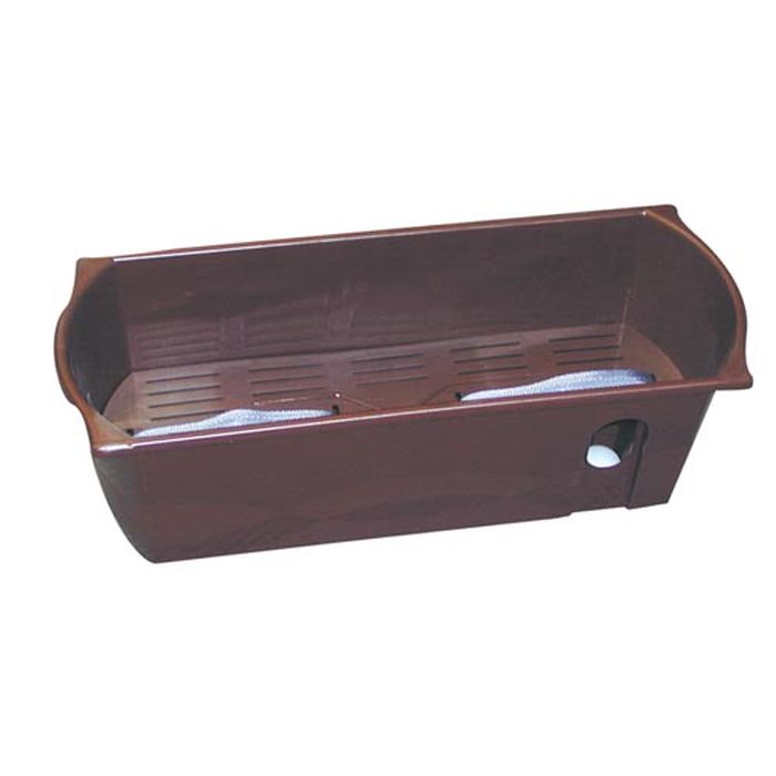Plastový hnědý matný samozavlažovací truhlík s roštem a s provlečeným knotem. Truhlík má tvar obdélníku, kdy jsou boční strany půlkruhově zahnuté. Celkový tvar kopíruje horní lem. V pravém dolním rohu se nachází otvor pro odtok přebytečné vody. Truhlík se hodí zejména pro výsadbu balkonových rostlin a k umístění na terasy, balkóny, lodžie, k zavěšení na zábradlí a pod. Rozměry: d. 60cm x š. 20cm x v. 16cm.