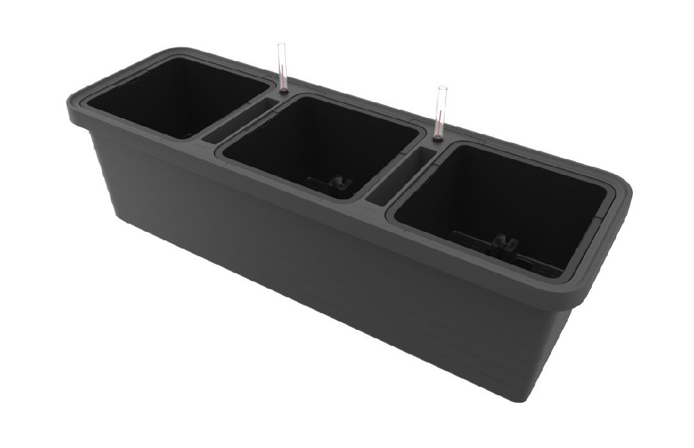 Každý díl má samostatně vyjímatelnou nádobu. Truhlík je opatřen kolečky, nádoby mají úchyty a také otvory pro pevné uchycení opory pro rostliny. Truhlík má velkou zásobárnu vody s hladinoměrem, dostatečně velký otvor pro zalévání a přepad vody. Skvěle se hodí pro pěstování zeleniny, květin, drobných keřů nebo bylin.