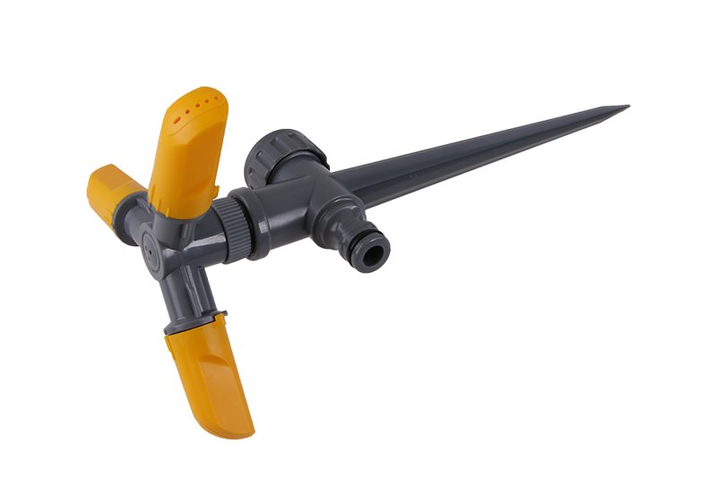 Zavlažovač hrotový rotační 3-ramenný, s připojením hadicovou rychlospojkou. Min.70 kPa a max.550 kPa.