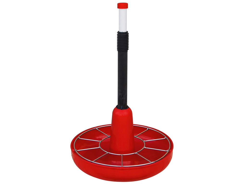 Adaptivní krmítko, pro krmení selat při odstavu, jednoduché připevnění k roštu, snadná údržba, 10 krmných míst, objem misky 9 l, průměr misky 42,5 cm, výška krmítka 68 cm.