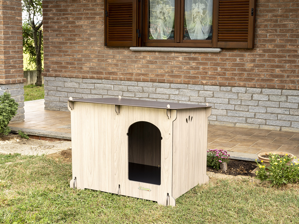 - Bouda vyrobena z HPL laminátu vyžaduje pouze velmi malou údržbu a snadno čistí pomocí otevírací střechy a vyjímatelného dna. Psí boudu můžete jednoduše umýt vodou a čisticími prostředky pro domácnost. Pouze je nutné se vyvarovat kyselin nebo alkalických roztoků, které by mohly poškodit povrch.