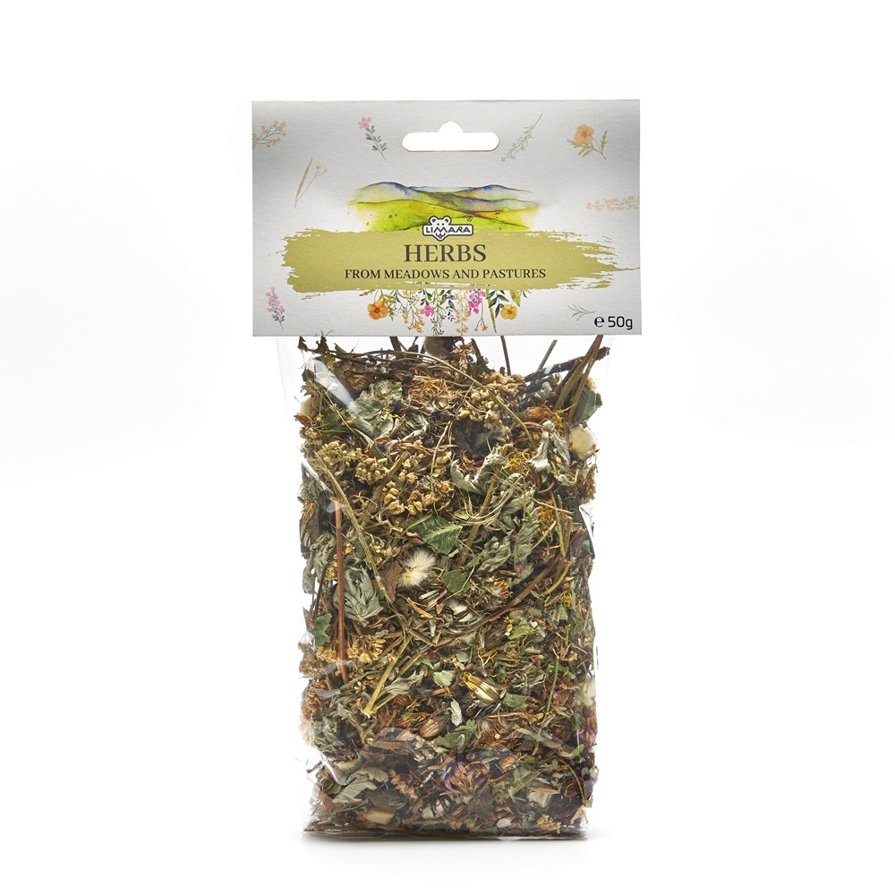 Bylinná směs pro králíky a drobné hlodavce obsahující bylinky z prostředí luk a pastvin, které jsou přirozenou součástí jídelníčku volně žijících druhů.
