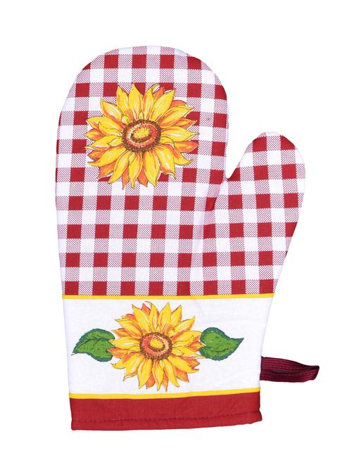 chňapka kuchyňská, 28x18cm, SLUNEČNICE červená, BA, magn., poutko, podš.