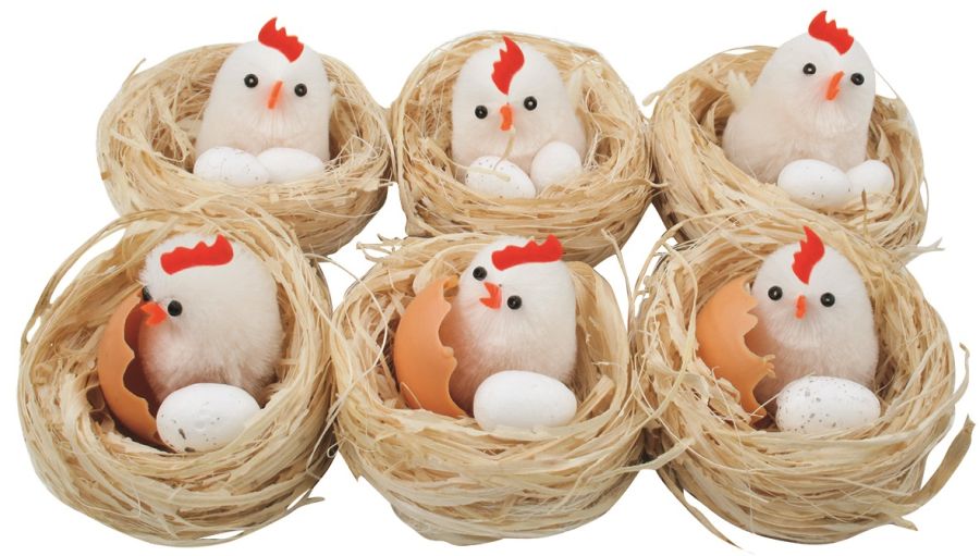 Dekorace KUŘÁTKO s vejcem v hnízdě 5,5cm, 6ks• Skladem centrální sklad | odešleme do 2-3 prac. dnů145 Kč/ bal120 Kč bez DPH