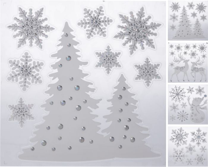 Dekorace 34x31cm, STŘÍBRNÁ, vánoční okenní, 4DRUHY