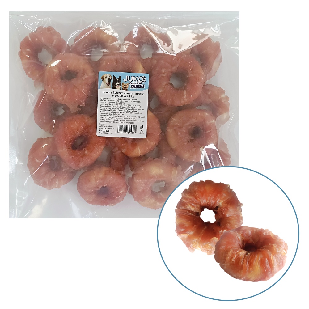 Donut s kuřecím masem měkký JUKO Snacks 6 cm, 1 kg (20 ks)Skladem centrální sklad | odešleme do 1-3 prac. dnů512 Kč/ bal457 Kč bez DPH