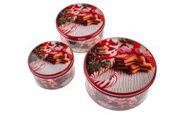 - Dóza plech. 3ks sada kulatá CUKROVÍ ČERVENÁ, d19,5x9cm