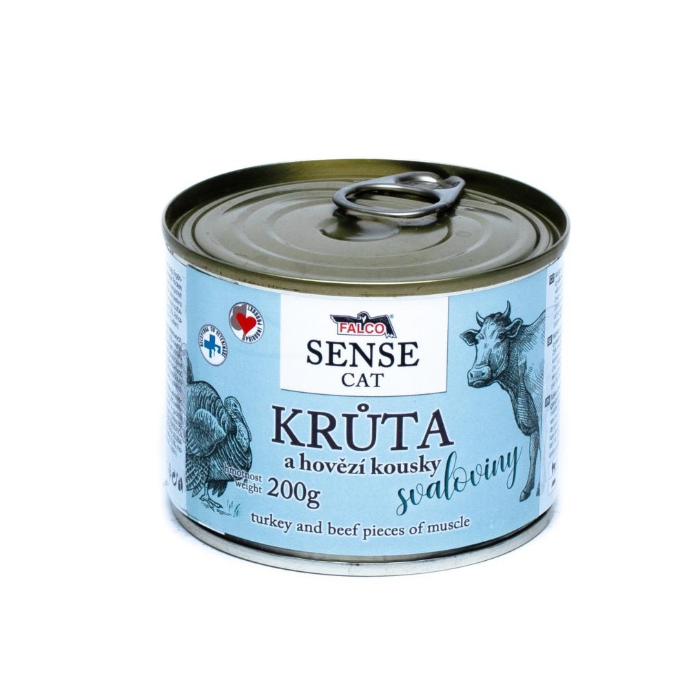 - FALCO SENSE Cat krůta a hovězí kousky svaloviny, konzerva 200 g