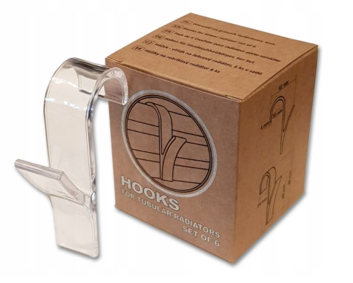 Háček- 6ks koupel., na topný žebřík, průhledný, plast