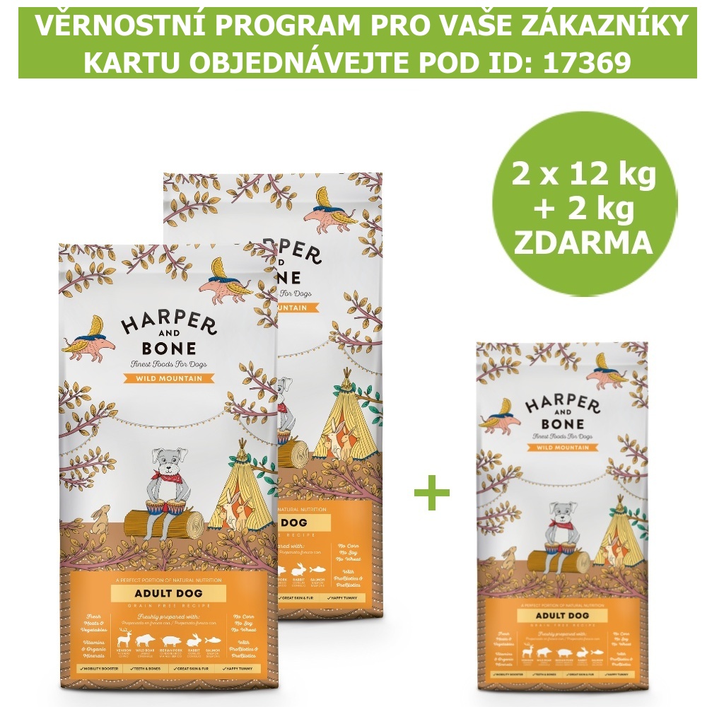 Harper and Bone Dog Adult Large & Medium divoké hory AKCE 2 x 12 kg + 2 kg ZDARMASkladem centrální sklad | odešleme do 1-3 prac. dnů2 949 Kč/ akce2 633 Kč bez DPH