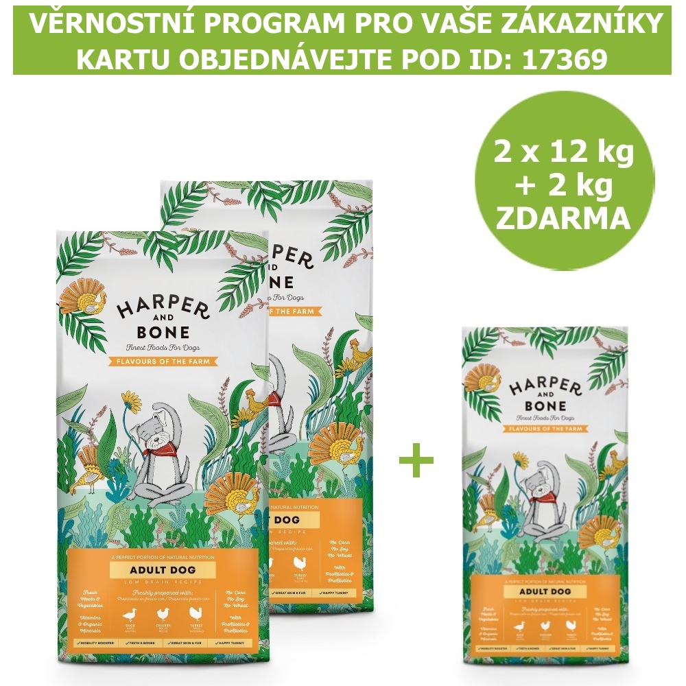 Harper and Bone Dog Adult Large & Medium příchutě farmy AKCE 2 x 12 kg + 2 kg ZDARMA