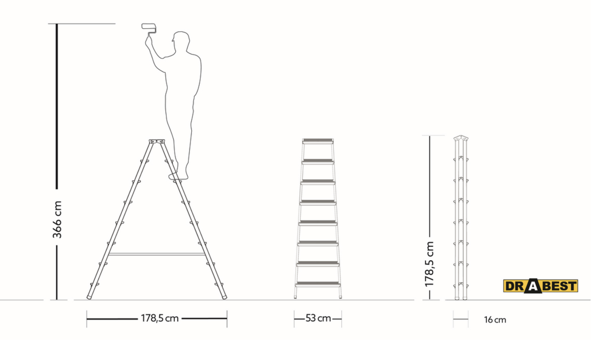 Hliníkové štafle / oboustranné schůdky DRABEST DD8 HOME (2×8 stupně) jsou lehké a stabilní schůdky vhodné do domácnosti, dílny i na zahradu. Odolná hliníková konstrukce s nosností ⚖️125 kg, protiskluzové stupně a patky zajišťují bezpečné používání. Štafle jsou skládací, snadno přenosné a nezabírají mnoho místa.