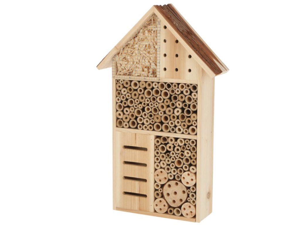 Hmyzí hotel je uměle vytvořený hmyzí domeček o velikosti D 27 x Š 9 x V 49 cm, který slouží jako úkryt a bezpečné místo k rozmnožování motýlů, včel, vos, mravenců a různých druhů brouků. Hmyzí hotel přispívá k tomu, aby Vaše zahrada byla krásně rozkvetlá a opylovaná.