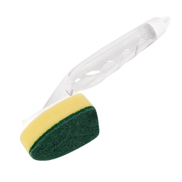 Mycí houba s dávkovačem mycího prostředku. Rukojeť je zároveň nádobou na tekutinu. Je vyrobena z průhledného plastu. Kapacita rukojeti s dávkovačem je 100 ml, takže ji využijete na mytí mnoha nádobí. Mycí houba je vyrobena z polyuretanové pěny (bezpečná pro nepřilnavou vrstvu), takže ji lze sejmout a vyměnit