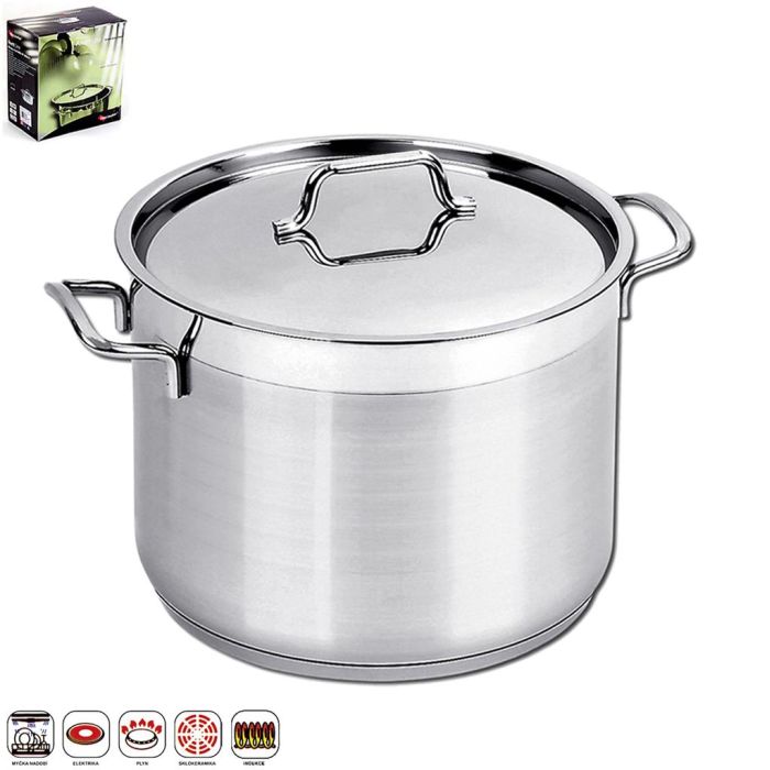 Hrnec je vyrobený z nerezové oceli 18/10 a díky svému silnému dnu je vhodný na všechny typy sporáků včetně indukce. Sendvičové dno akumuluje teplo a šetří tak energii při vaření. Součástí hrnce je nerezová poklice, díky které můžete toto nádobí použít i do trouby. Elegantní nerezové úchyty jsou připevněny bodovým svárem, který izoluje teplo z hrnce. Vnitřní i vnější povrch má matnou úpravu, která je ozvláštněna lesklými prvky. Univerzální a nadčasový design je vhodný do každé kuchyně. Nerezové nádobí je vhodné do myčky. Na základě pozitivních ohlasů od našich zákazníků rádi doporučujeme toto nádobí i vám. Rozměry: obj. 8,1l x pr. 24cm x v. 18 cm.