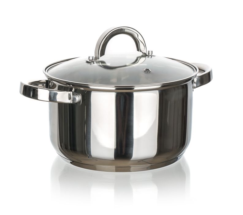 Nerezový hrnec se skleněnou poklicí CUISINO má vnější i vnitřní povrchovou úpravu v lesku a na vnitřní straně měrku objemu, nerezový čudlík i držadla (přišroubované). Hrnec lze používat na všechny typy varných desek, včetně indukce.