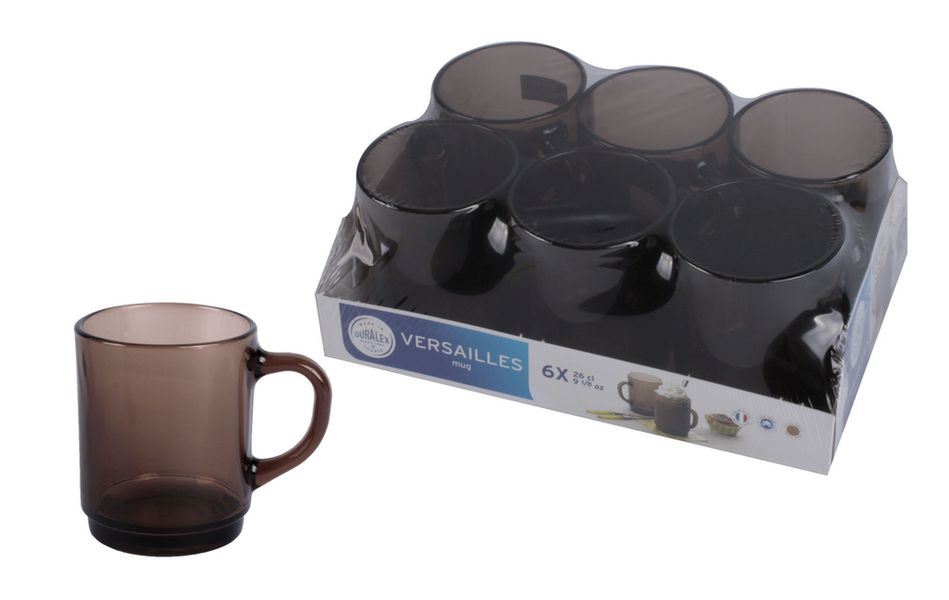 - Hrnek 260ml, 6ks-Sépie,VERSAILLES, d7,2x8,9cm, DURALEX,sklo