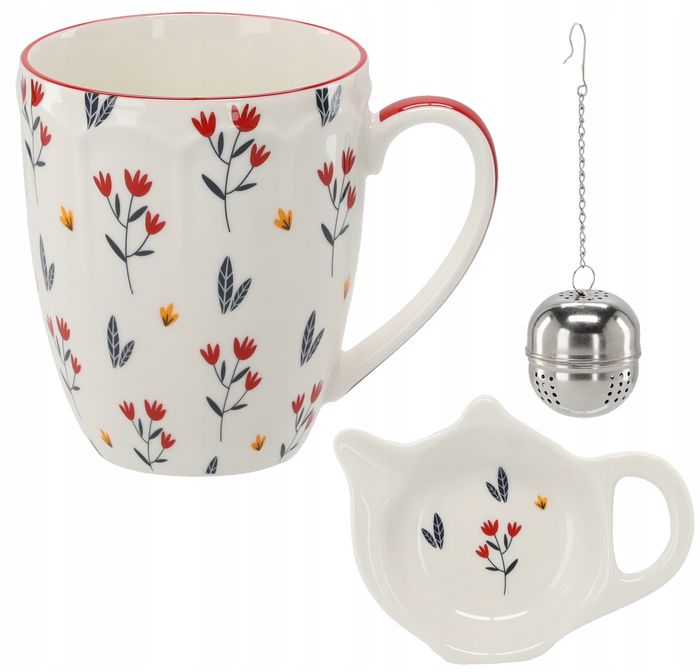 Hrnek 350ml KVĚTY, 3DEKORY, čajítko, podčajník, porcelán, DB• Skladem centrální sklad | odešleme do 2-3 prac. dnů219 Kč/ bal181 Kč bez DPH
